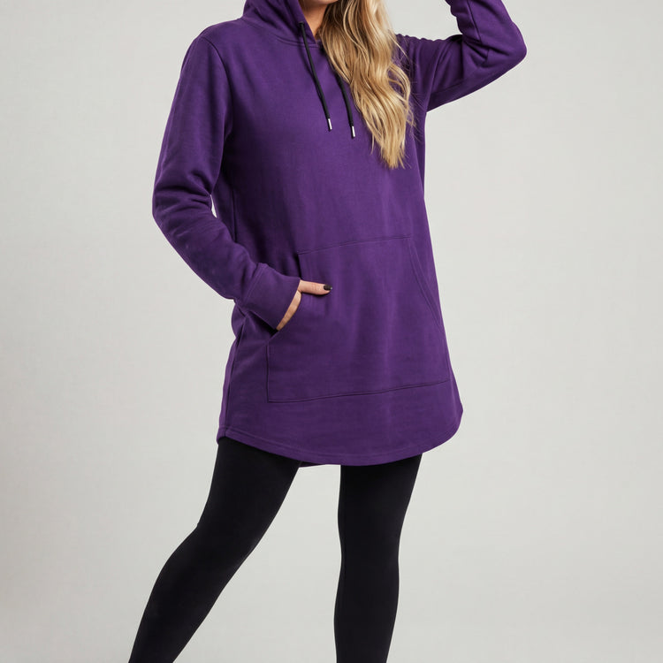 The hoodie design adds a practical touch, while the longer length provides added coverage. Easy to style with sneakers or boots, this hoodie dress is designed for comfort and convenience throughout the day.